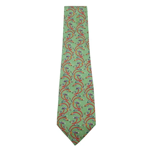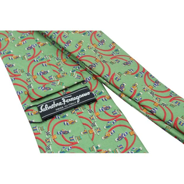 SALVATORE FERRAGAMO Green Print Silk Tie