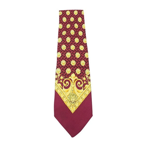 VERSACE Burgundy/ Ywllow Print Silk Tie