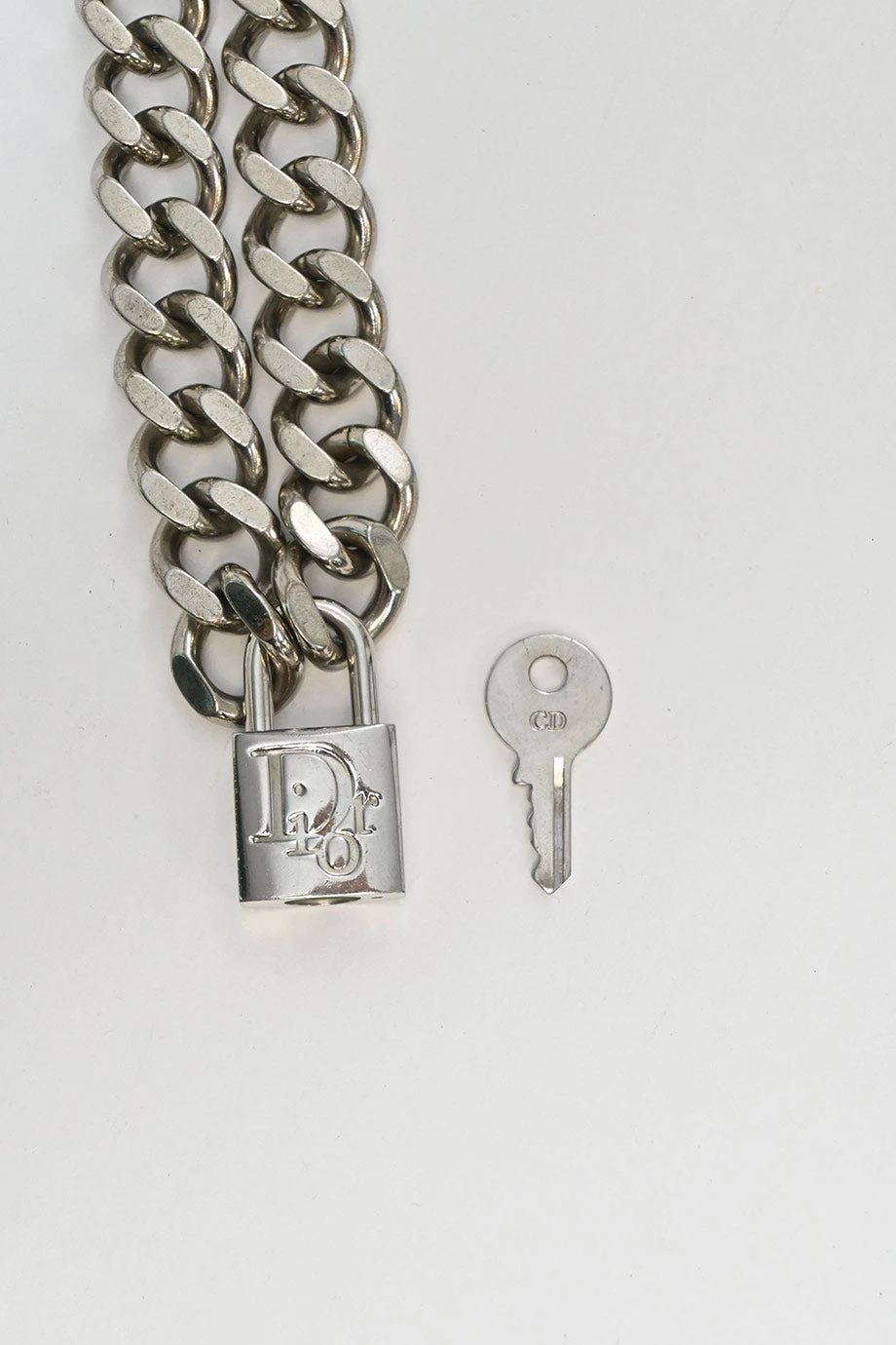 CHRISTIAN DIOR Sterling silver logo-embossed padlock chainlink necklace