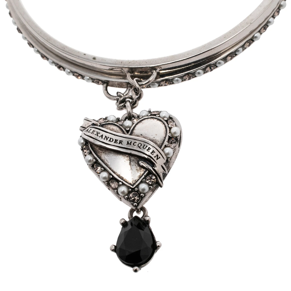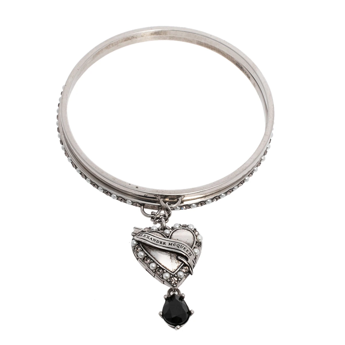 Alexander McQueen Antique Silver Tone Heart Locket Charm Layered Bangle Bracelet