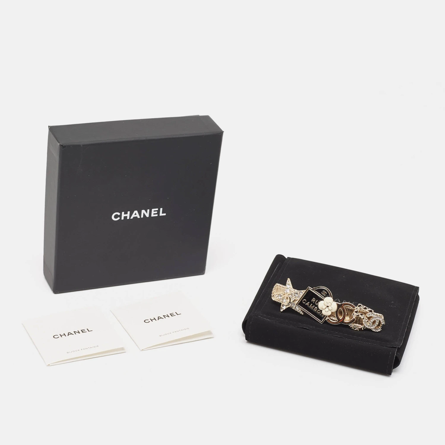 CHANEL CC Rue Cambon Crystals Enamel Gold Tone Hairclip