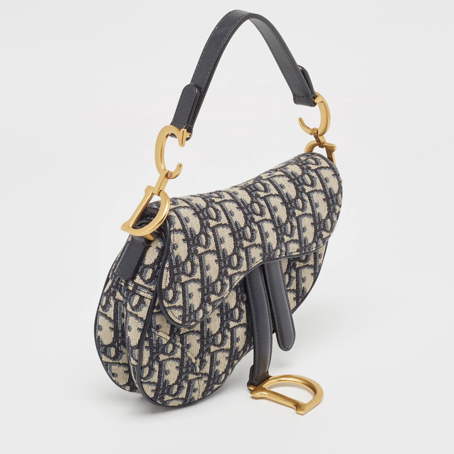 DIOR Navy Blue Oblique Canvas and Leather Mini Saddle Bag