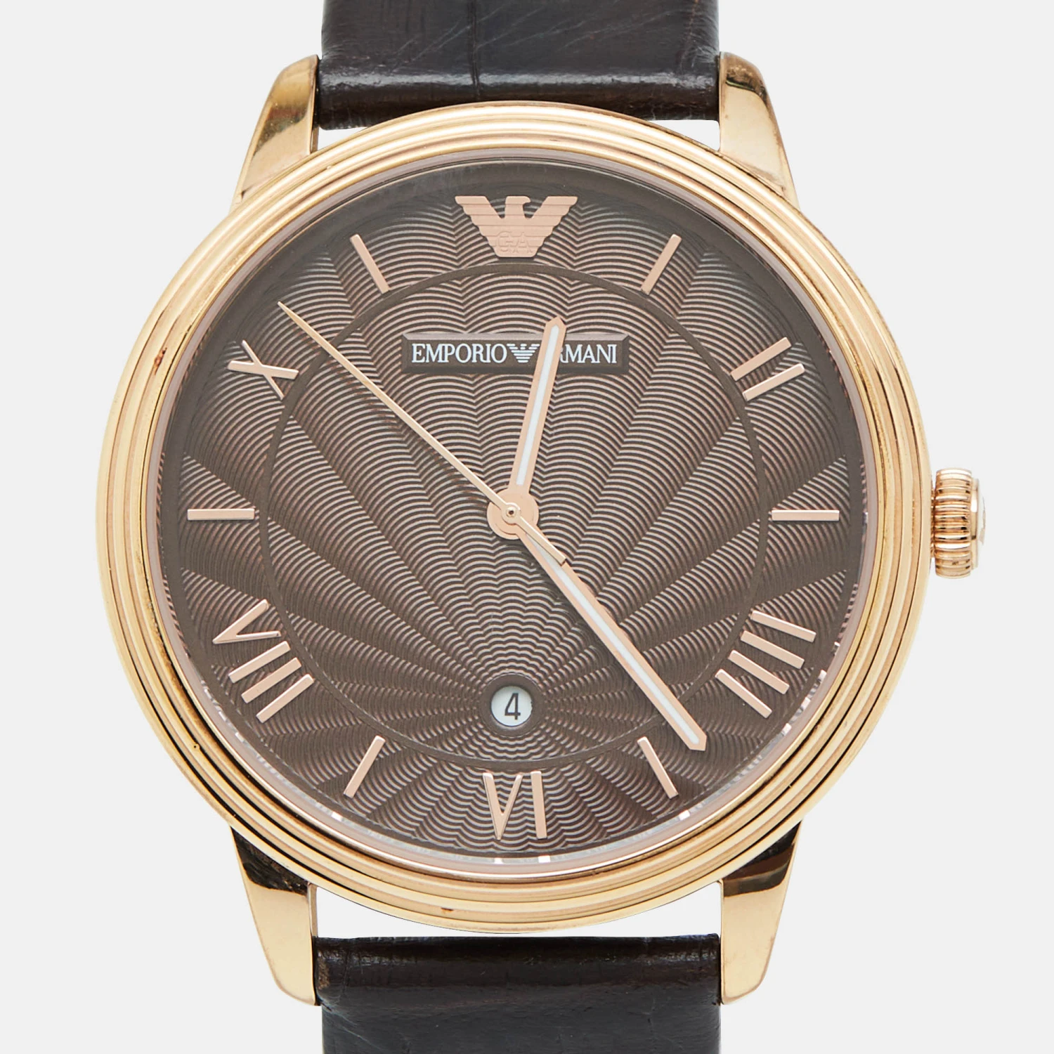 EMPORIO ARMANI Brown Gold PVD Coated Stainless Steel Embossed Leather Classic AR1613 Men’s Wristwatch 41 mm