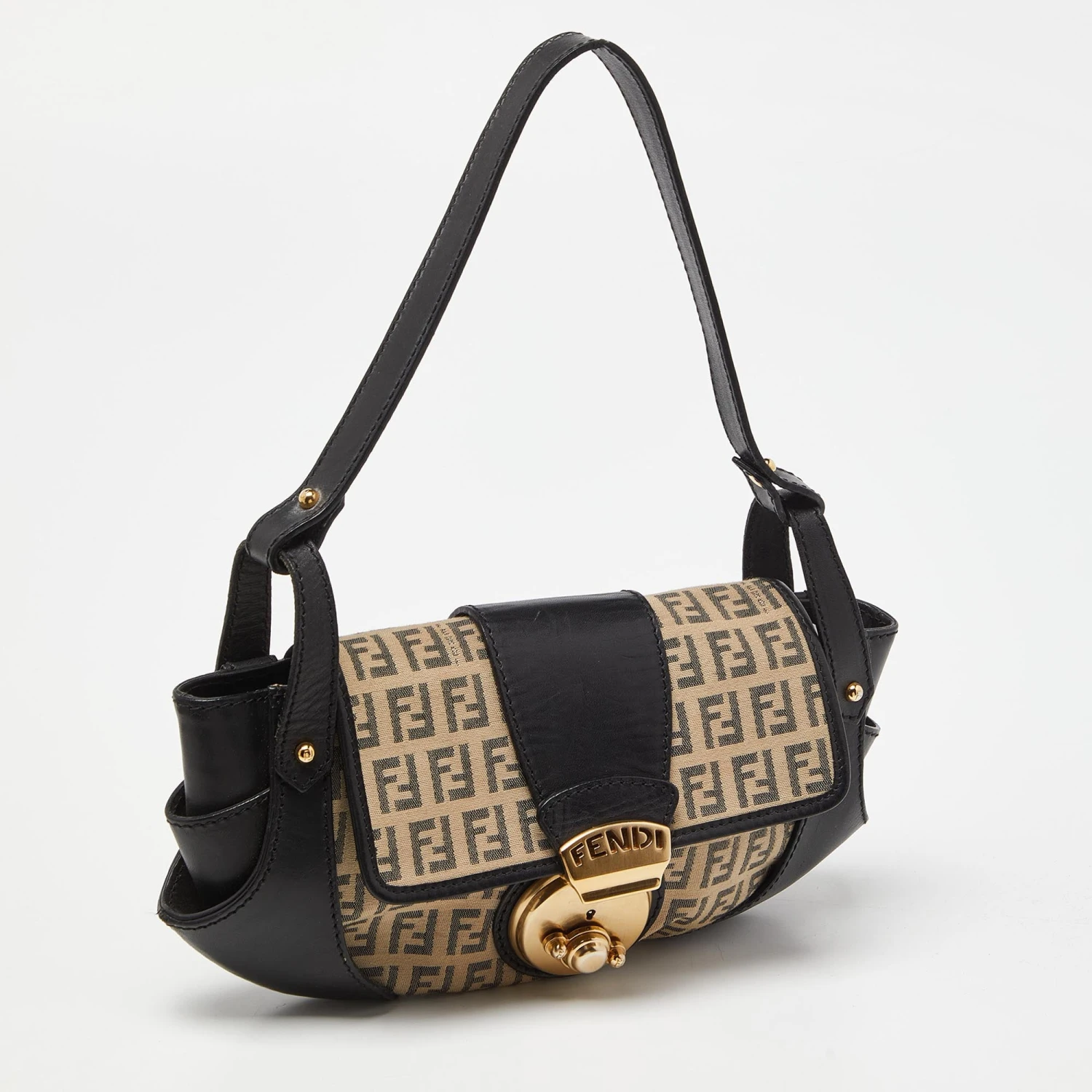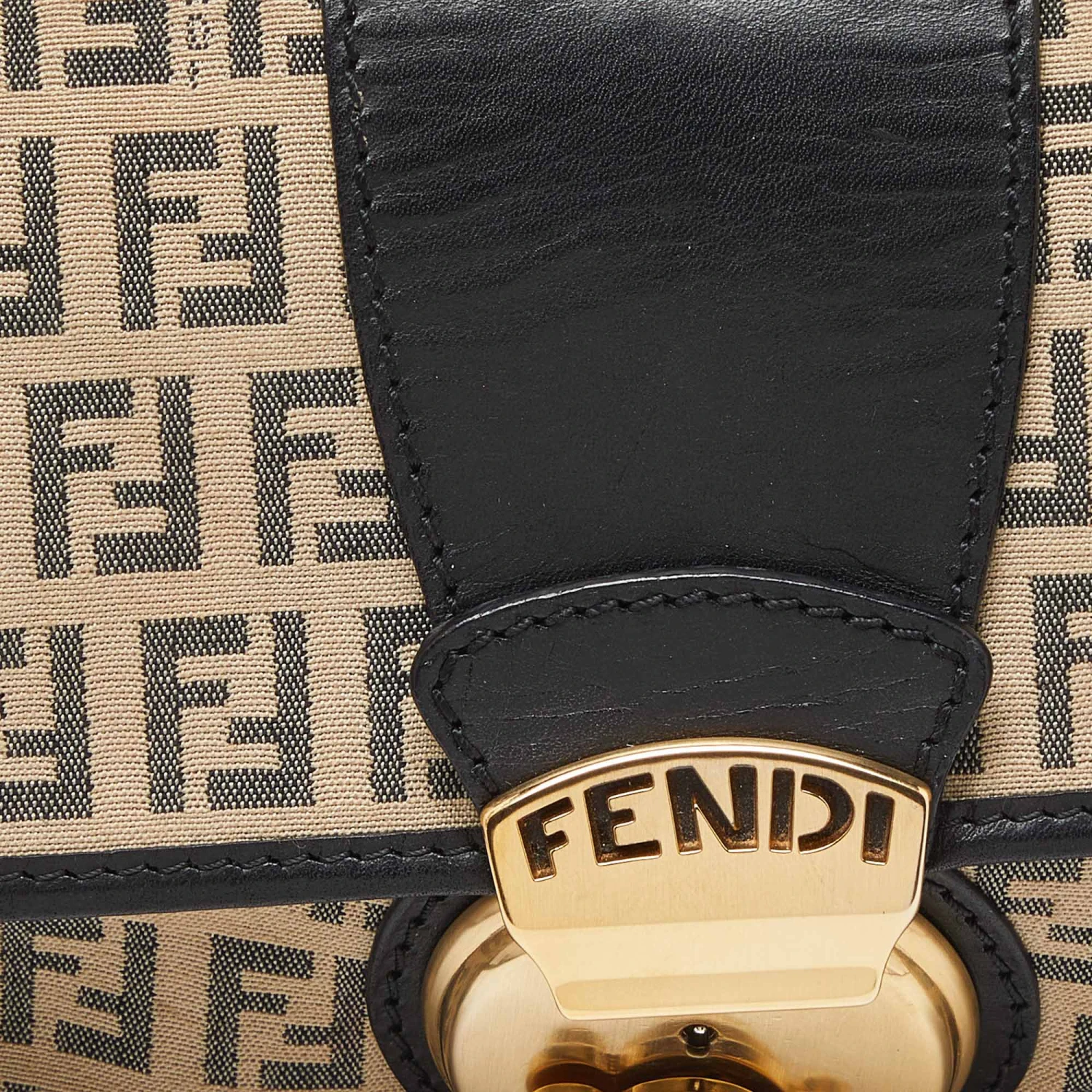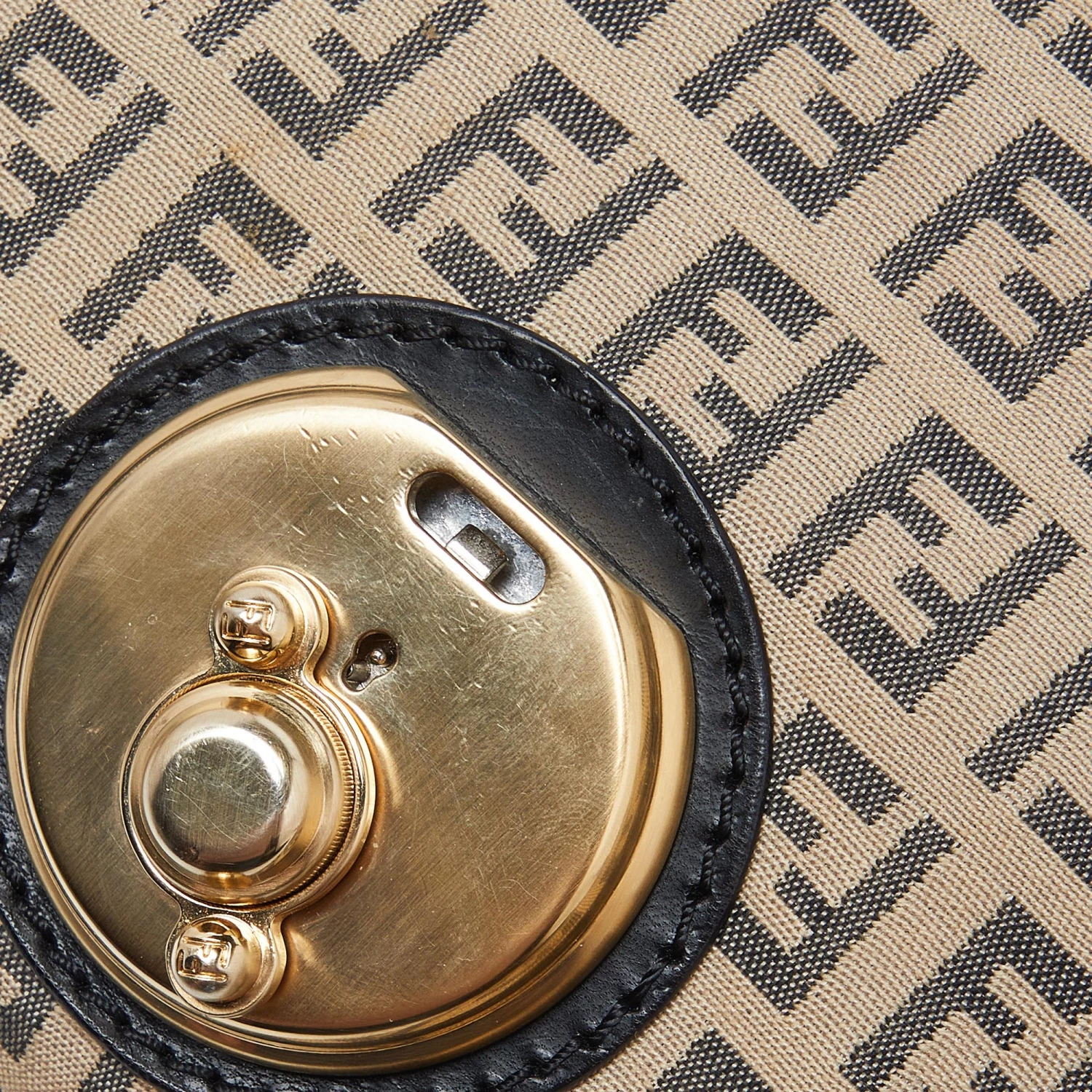 FENDI Beige/Black Zucchino Canvas and Leather Compilation Baguette Bag