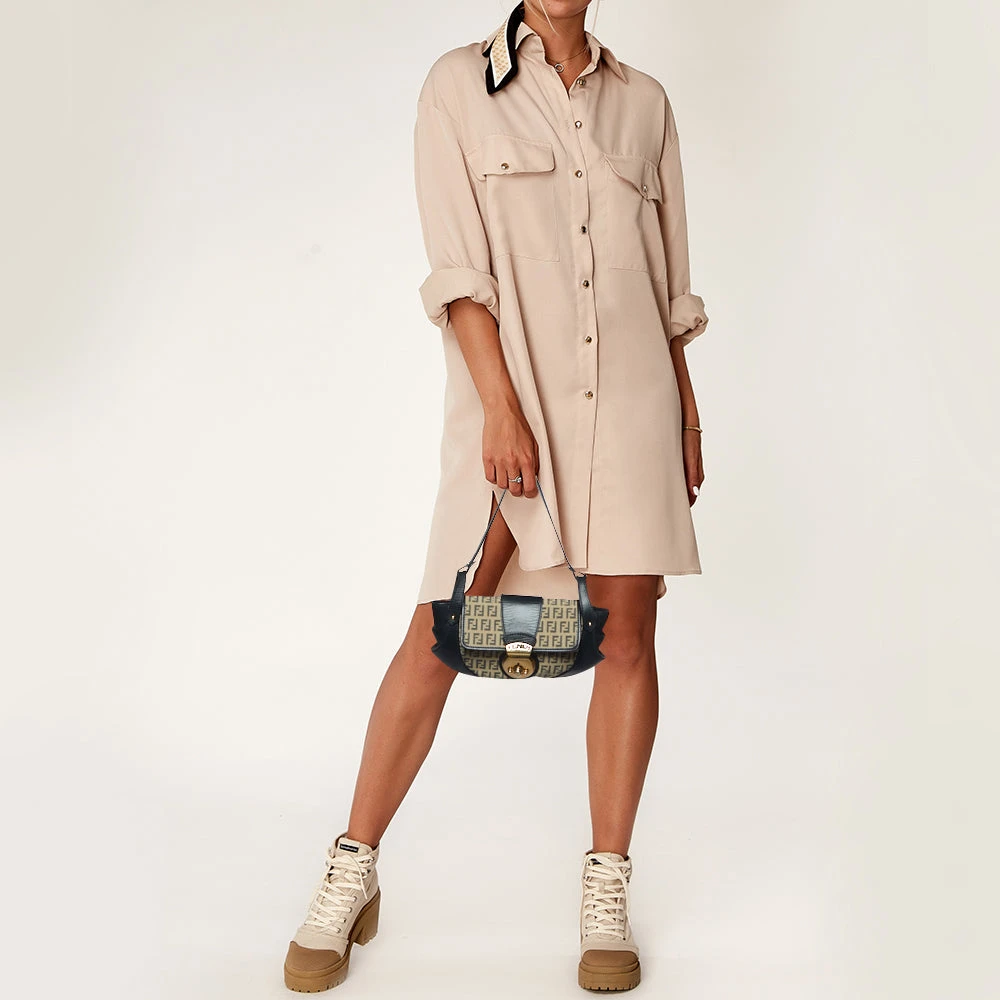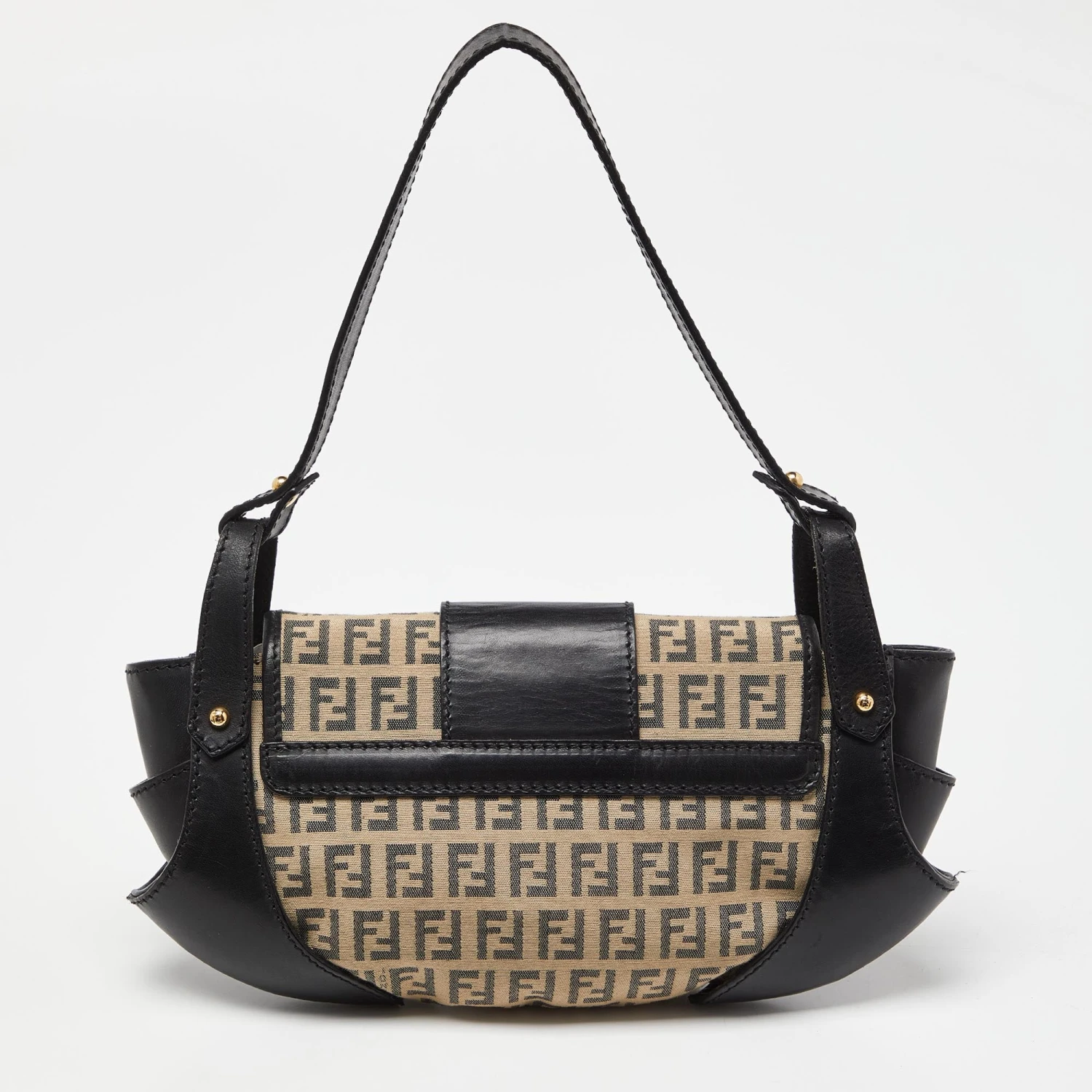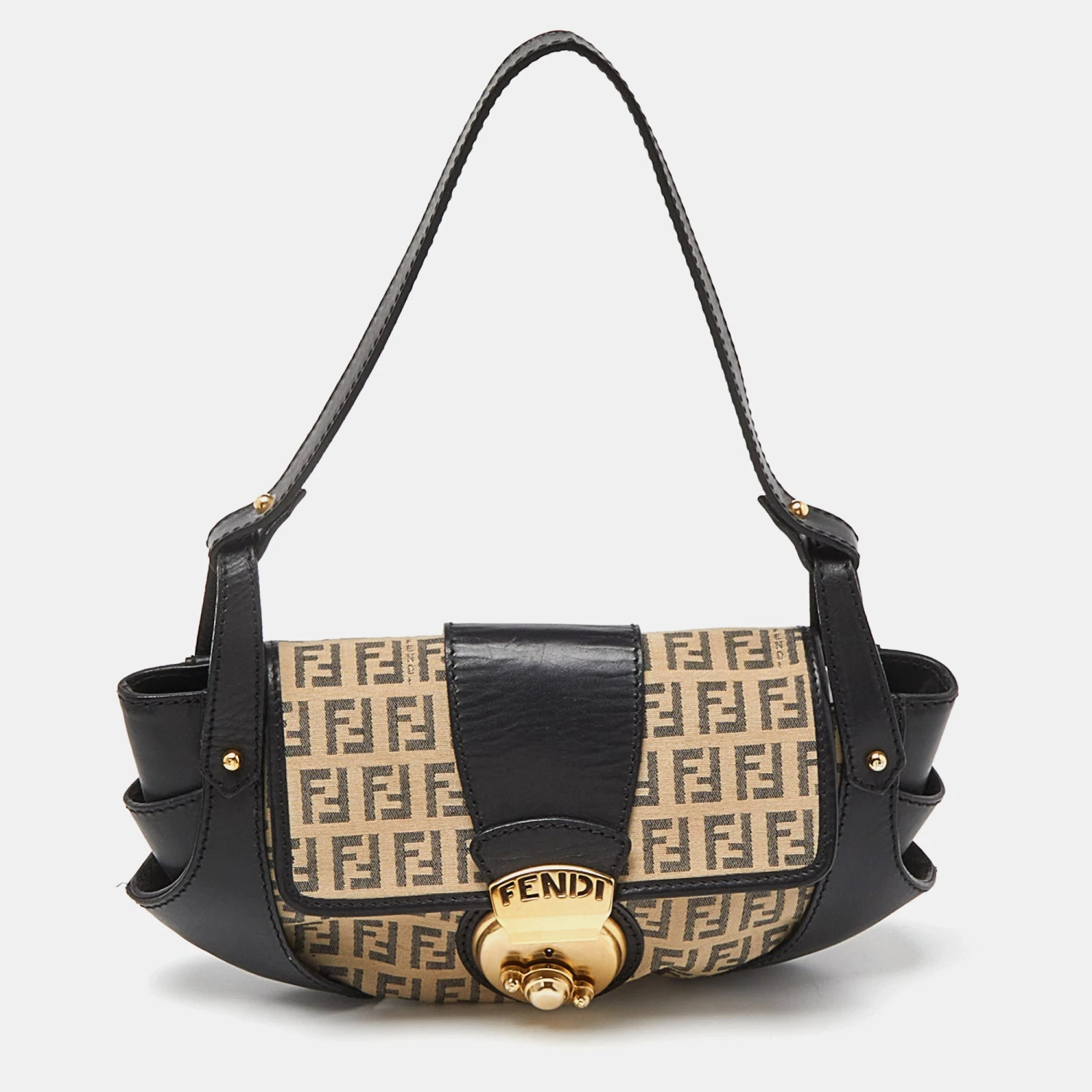 FENDI Beige/Black Zucchino Canvas and Leather Compilation Baguette Bag
