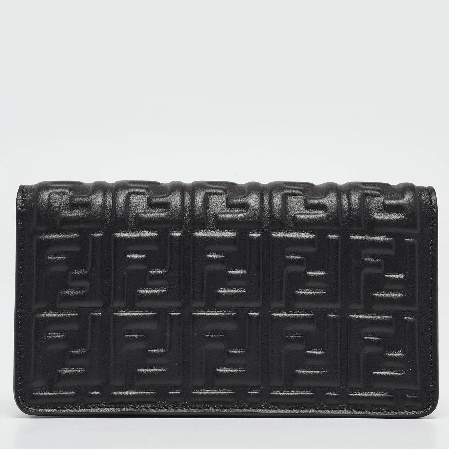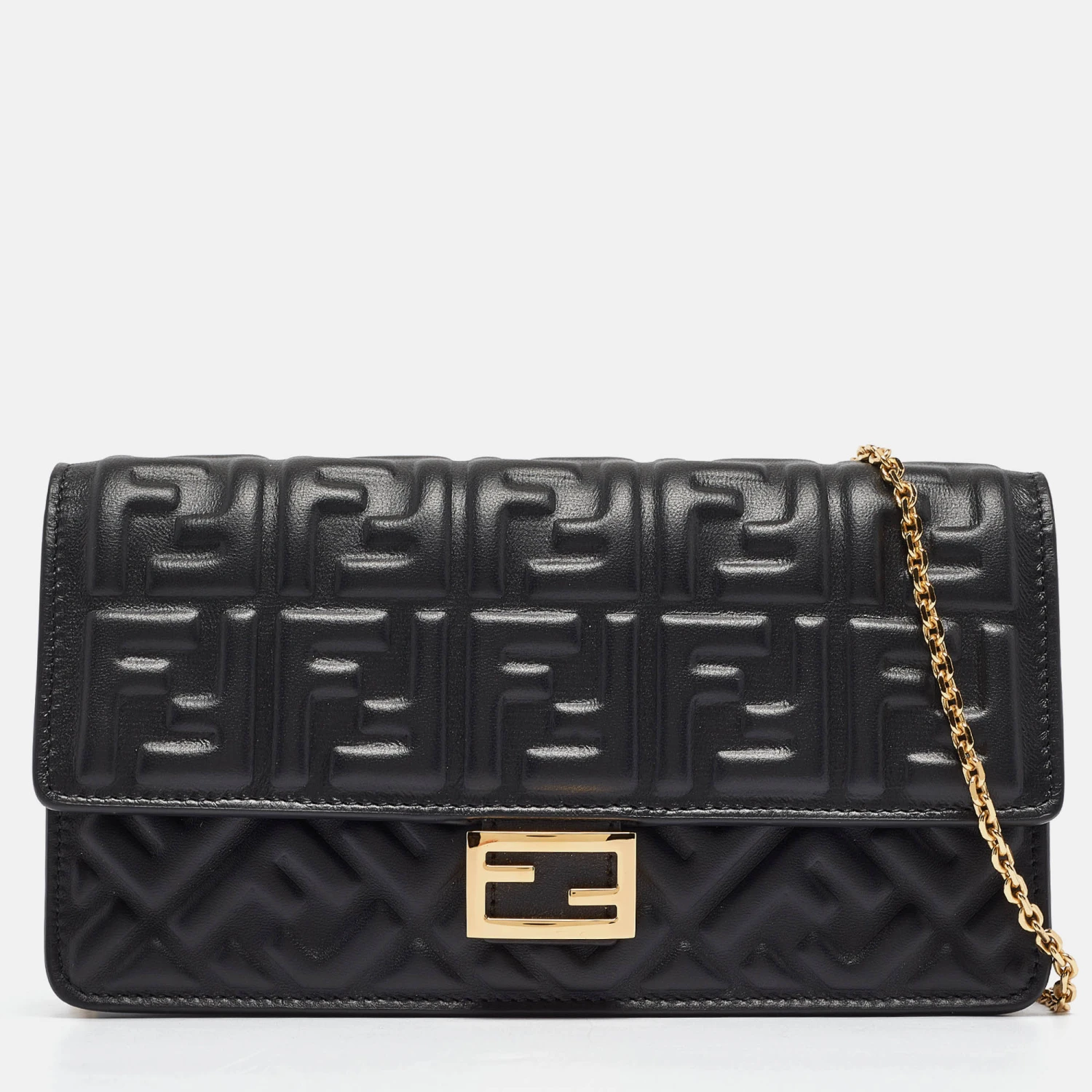 FENDI Black Zucca Embossed Leather Baguette Wallet on Chain