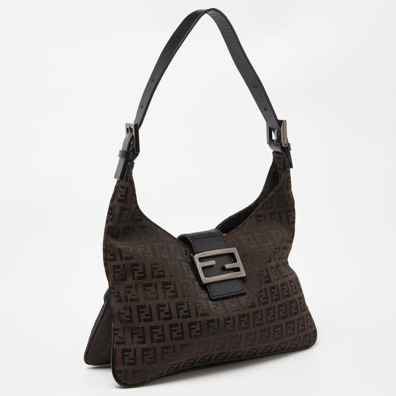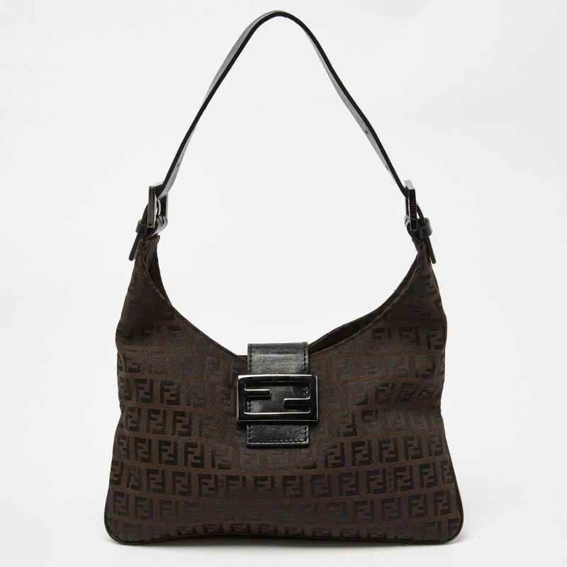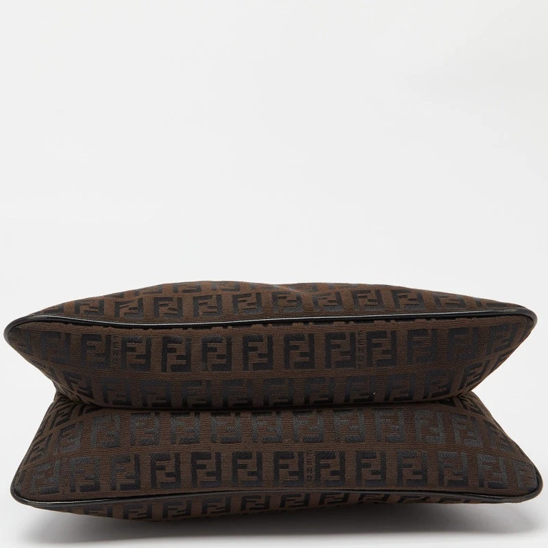 FENDI Tobacco Zucchino Fabric and Leather Baguette Flap Bag