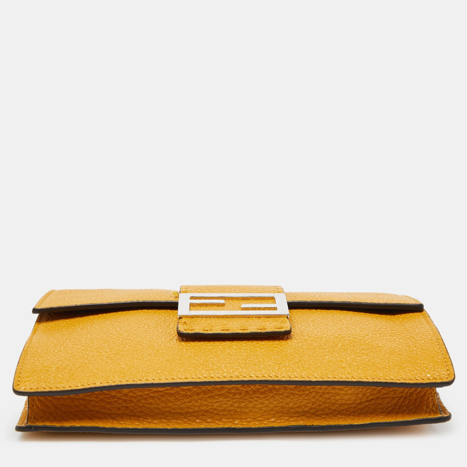 FENDI Yellow Selleria Leather Flat Baguette Messenger Bag