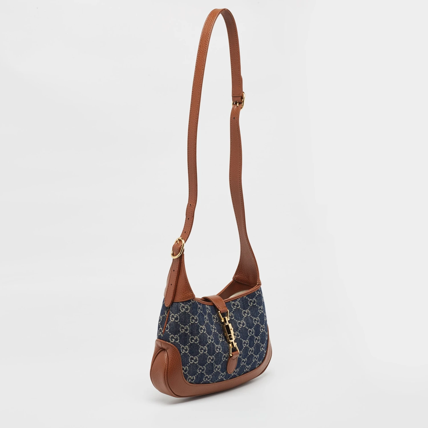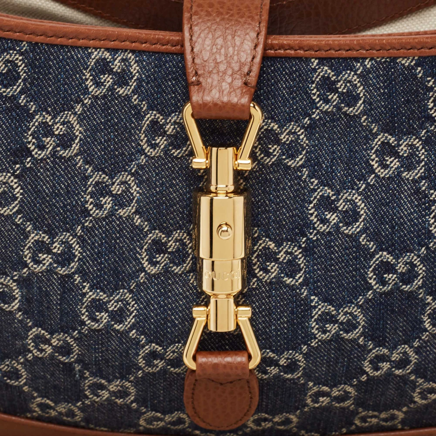GUCCI Brown/Blue GG Denim and Leather Jackie 1961 Shoulder Bag