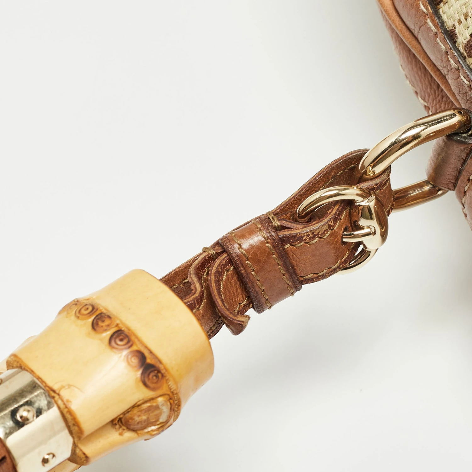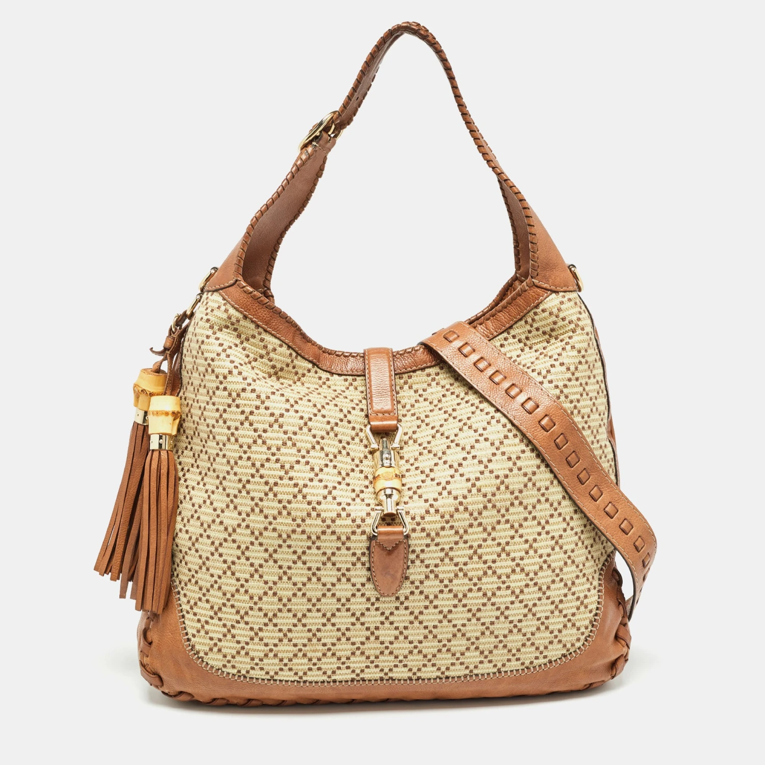 GUCCI Brown/Light Beige Diamante Raffia and Leather Large New Jackie Hobo