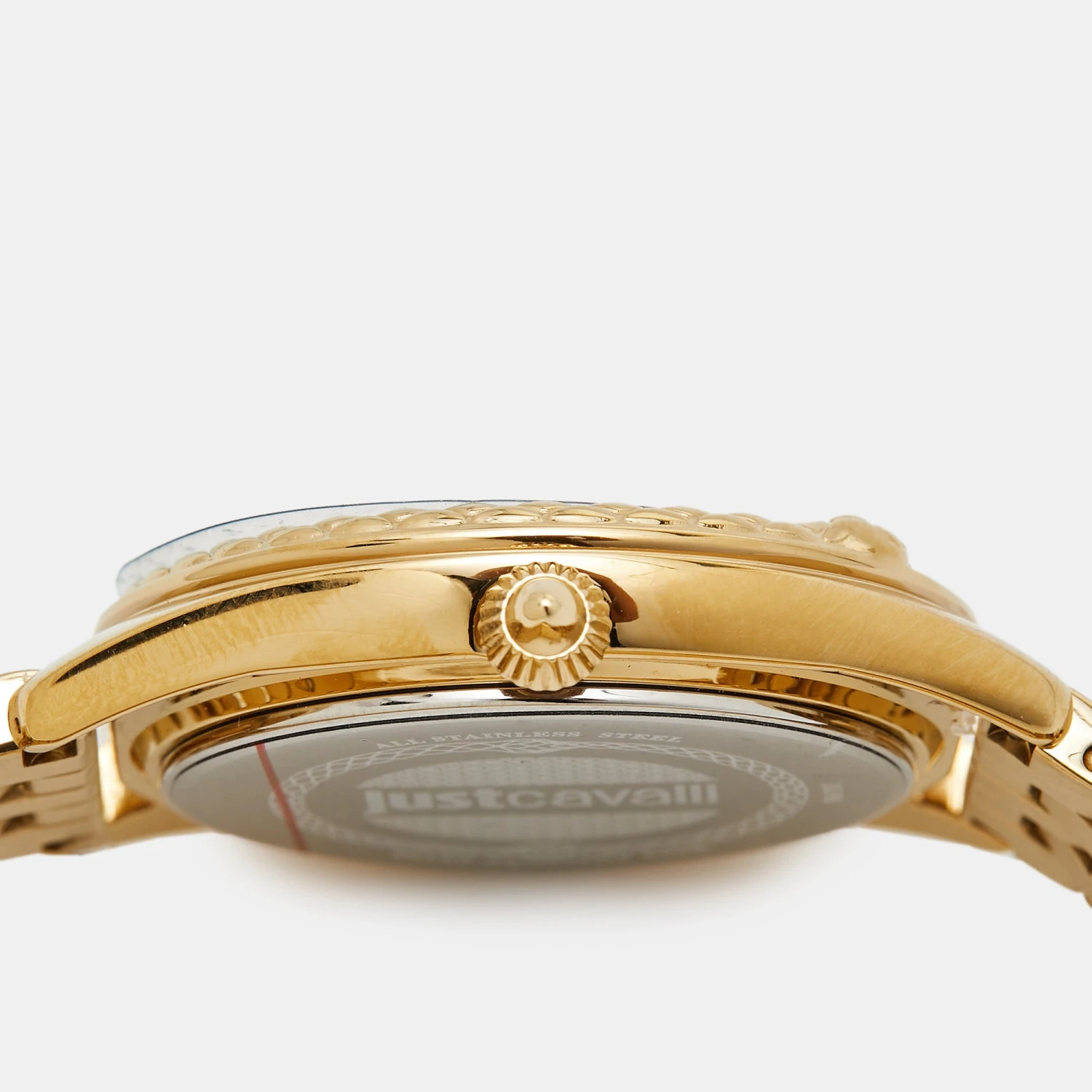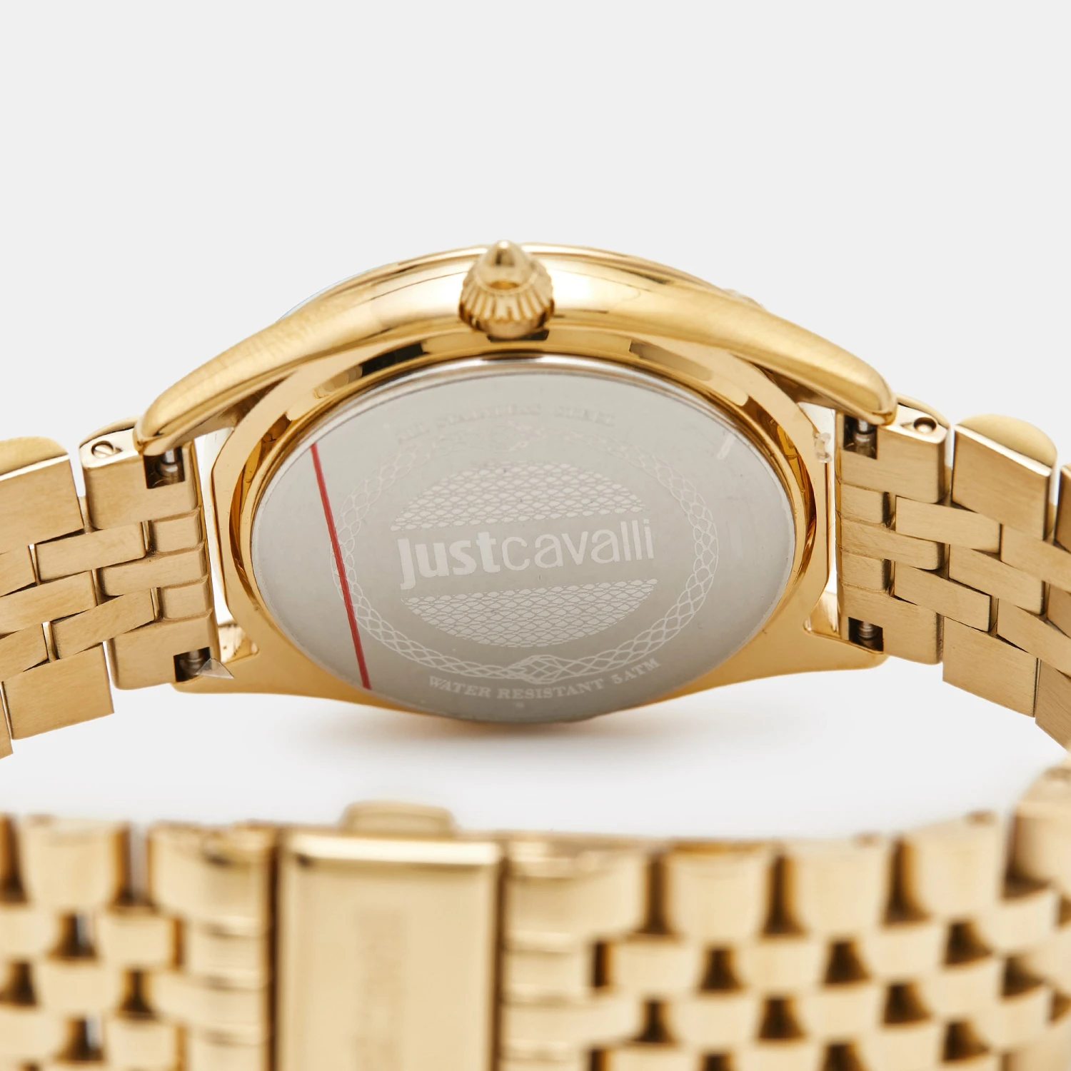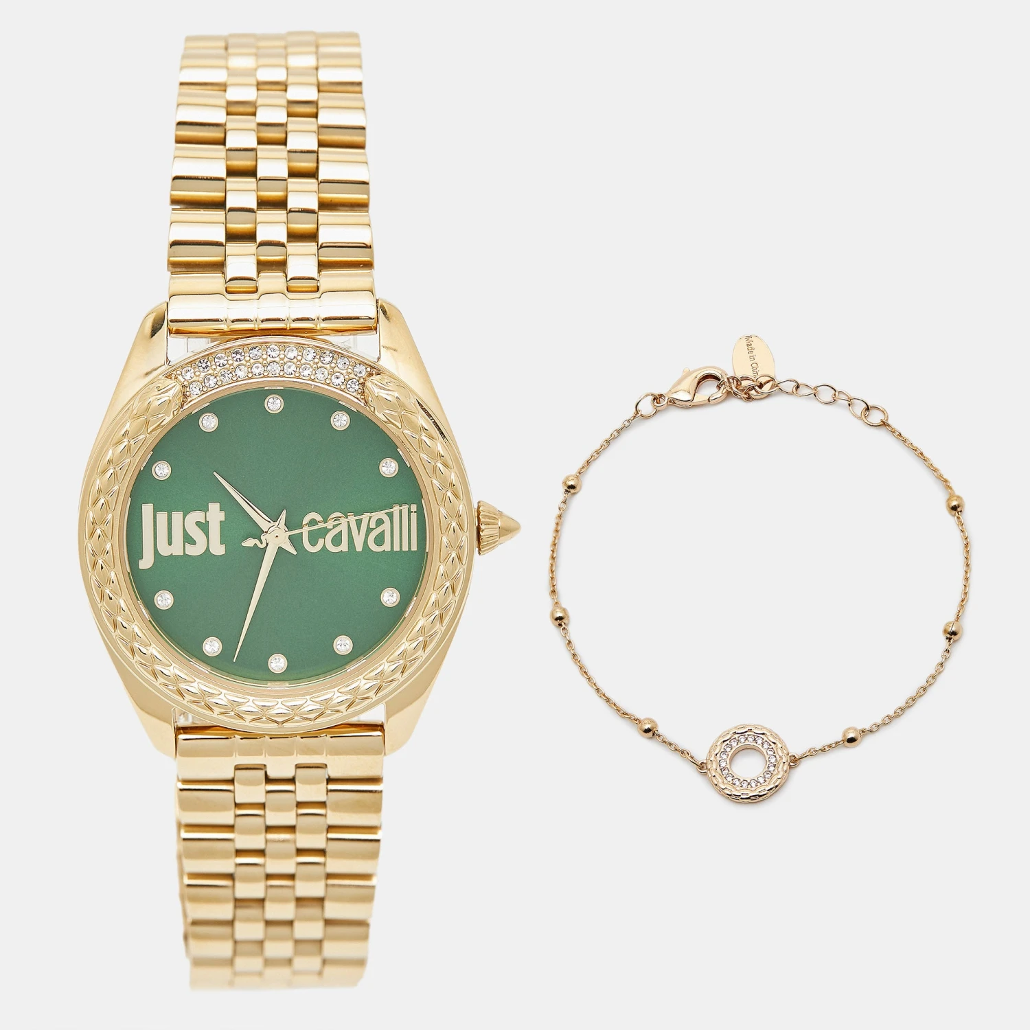 JUST CAVALLI Green Gold Plated Stainless Steel Crystal Brillante JC1L195M0075 Women’s Wristwatch Set 34 mm