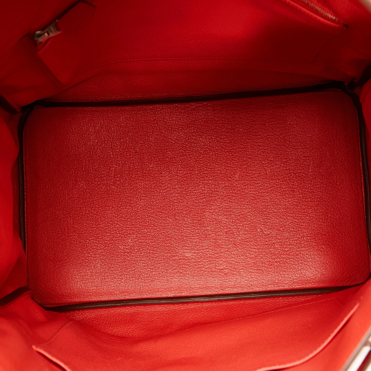 This stunning handbag is crafted of grained calfskin leather in red and features rolled leather top handles, a short front flap, a strap closure, and palladium hardware including a turn lock, padlock, and keys.