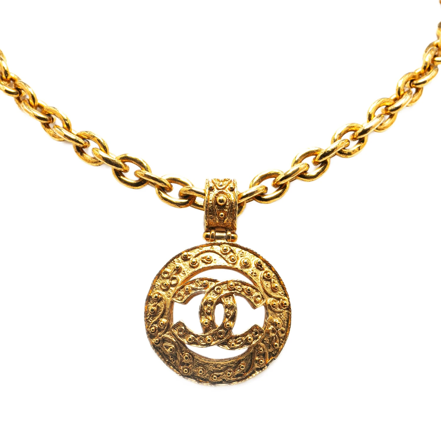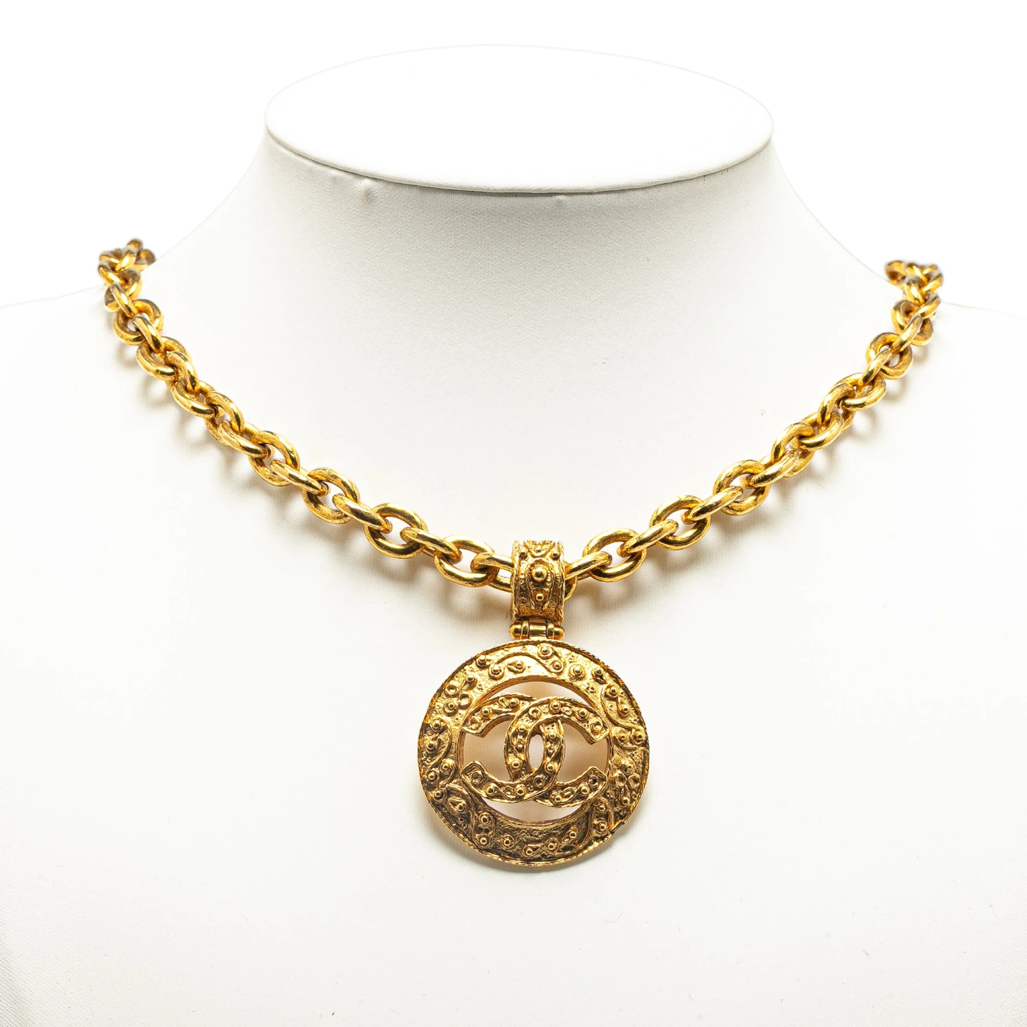 CHANEL CC Round Pendant Necklace Costume Necklace