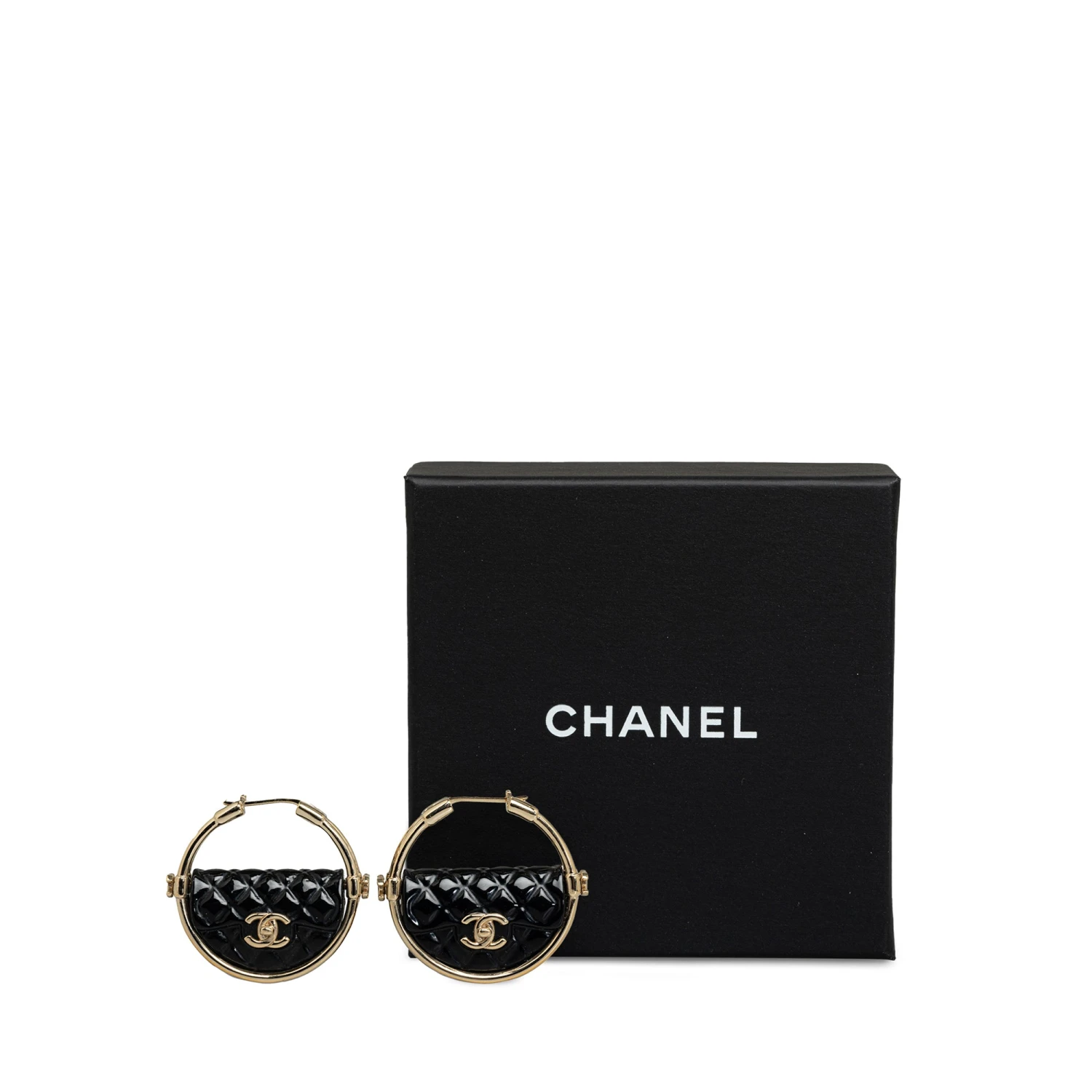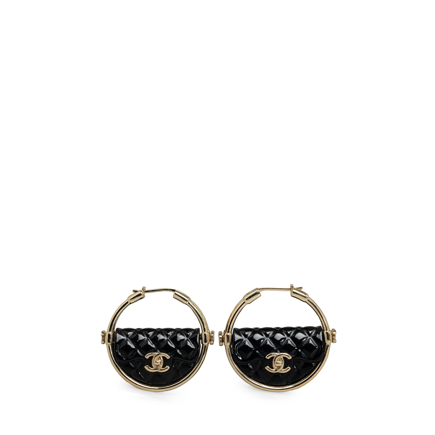 CHANEL Resin Quilted Flap Bag Hoop Earrings