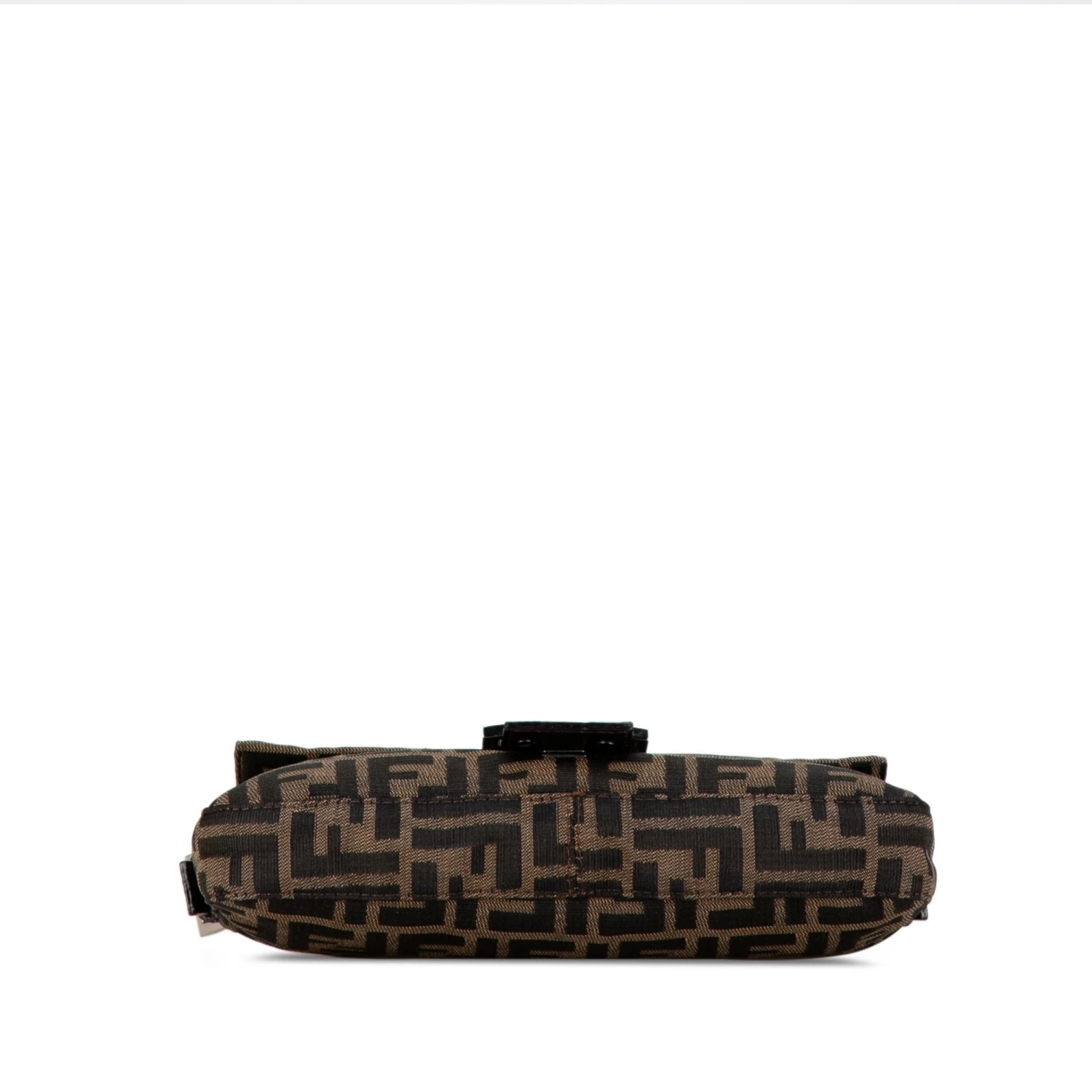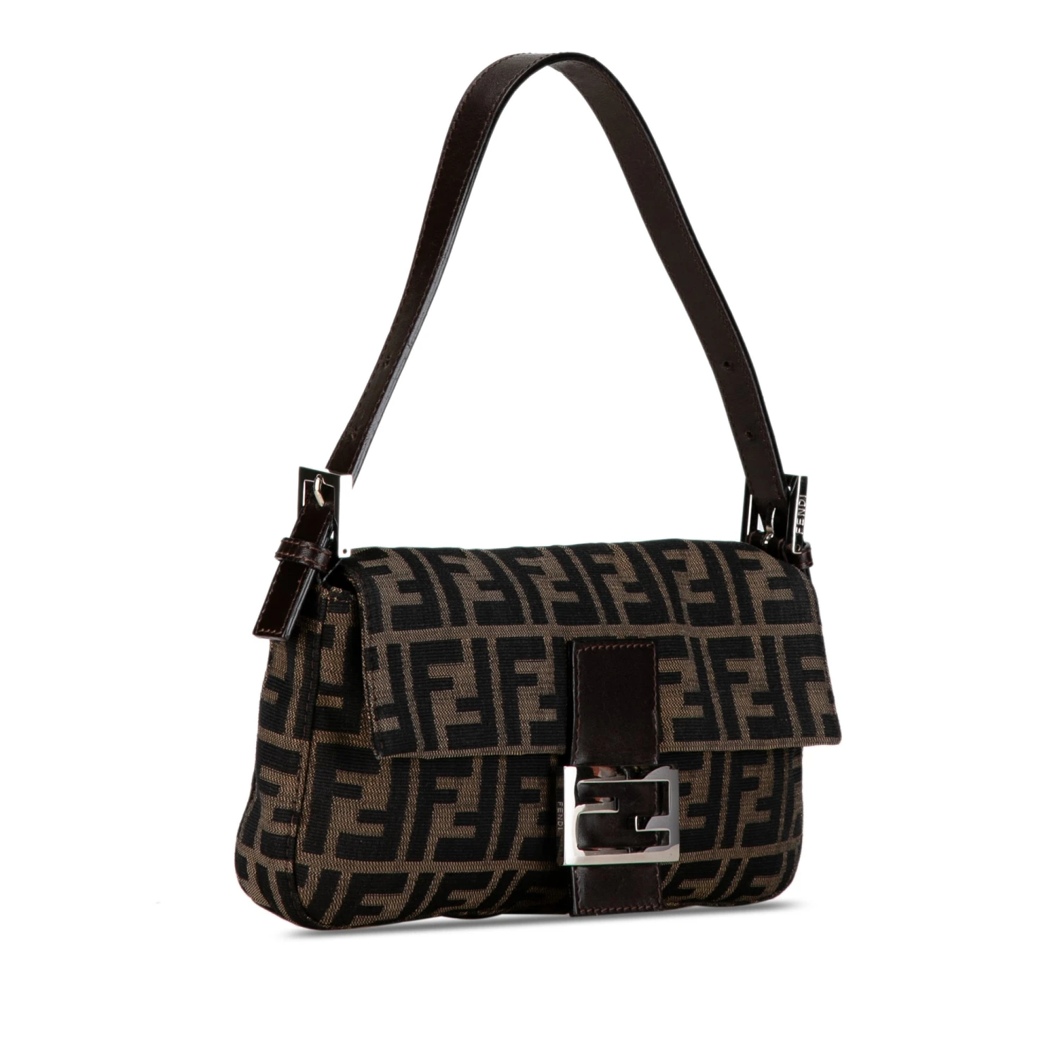 This shoulder bag features a canvas body, a flat leather strap, a front flap with magnetic snap closure, and an interior zip pocket.