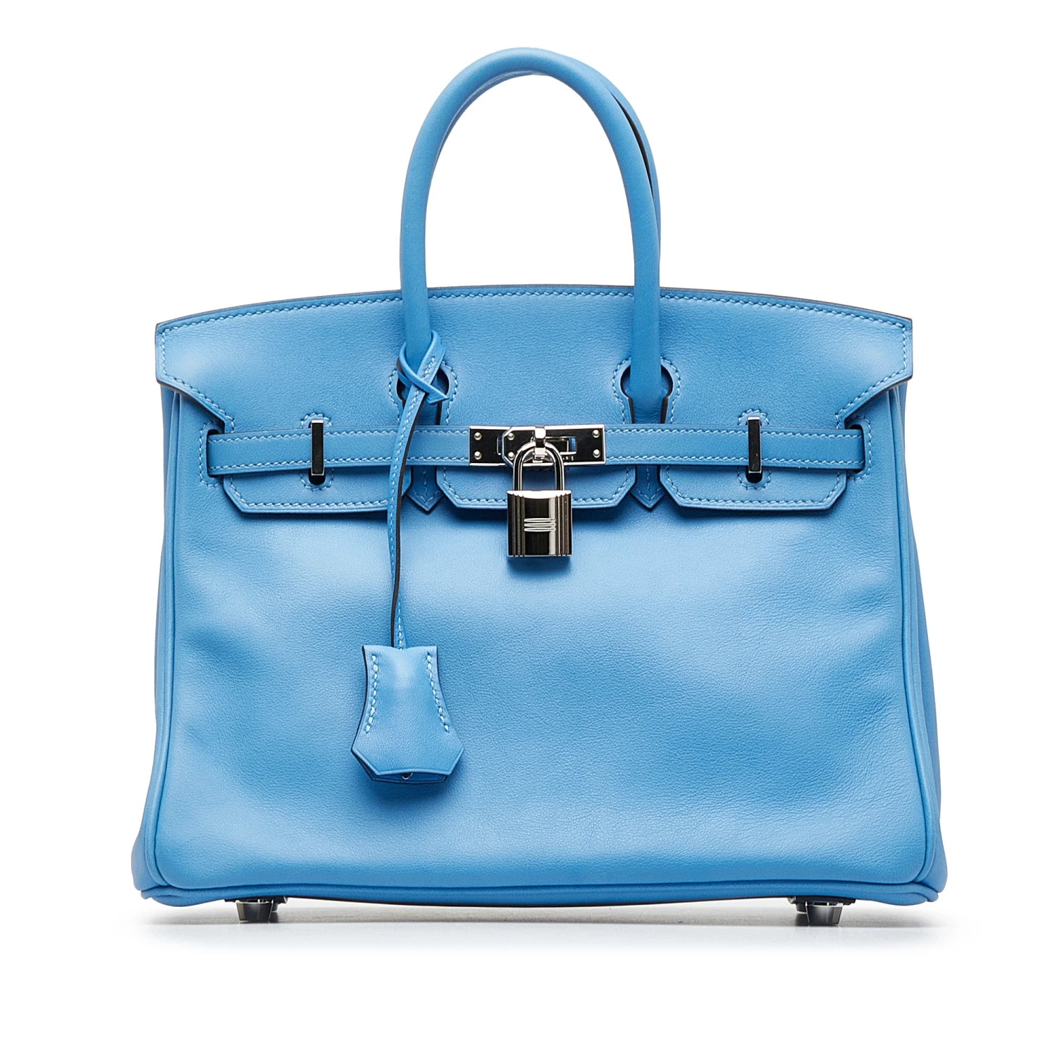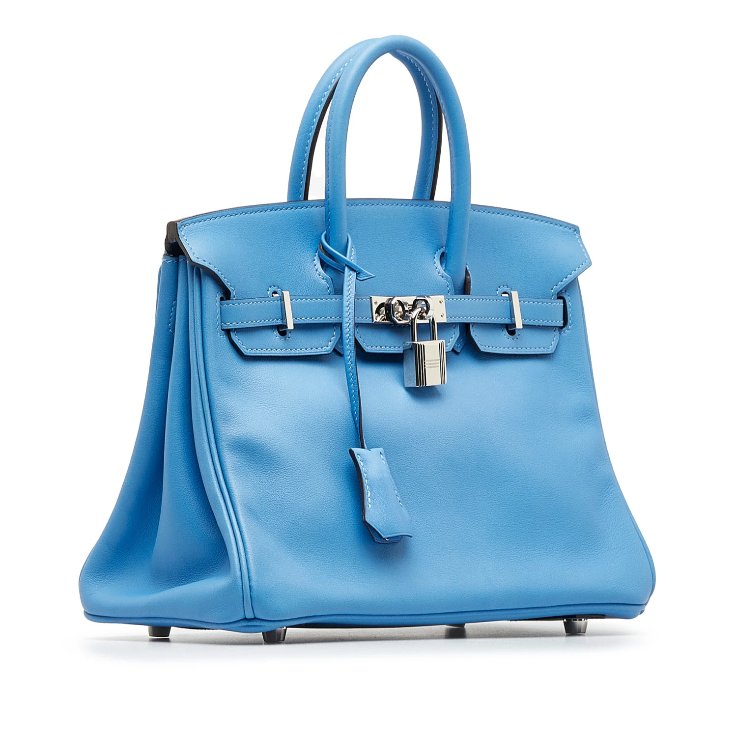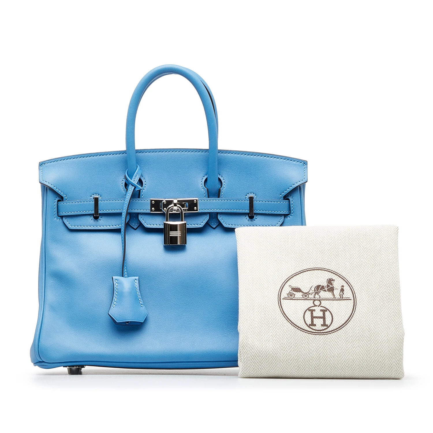 The Birkin 25 features a leather body, rolled leather handles, a front flap with turn-lock closure, silver hardware, leather lining, and interior open and zip pockets. It comes with a clochette, lock, and key. Comes with dust bag
