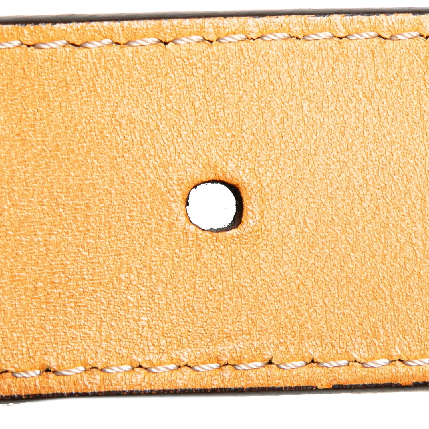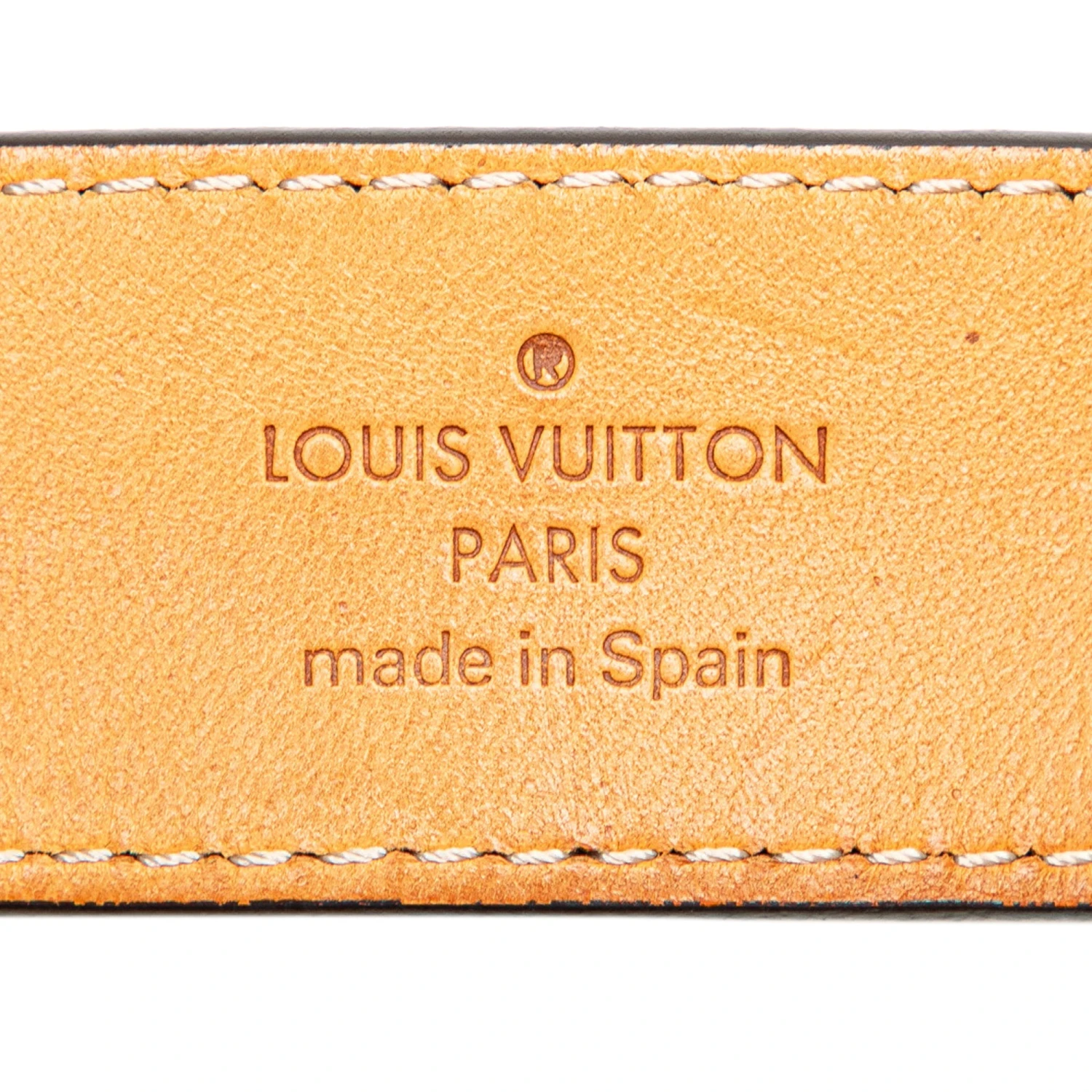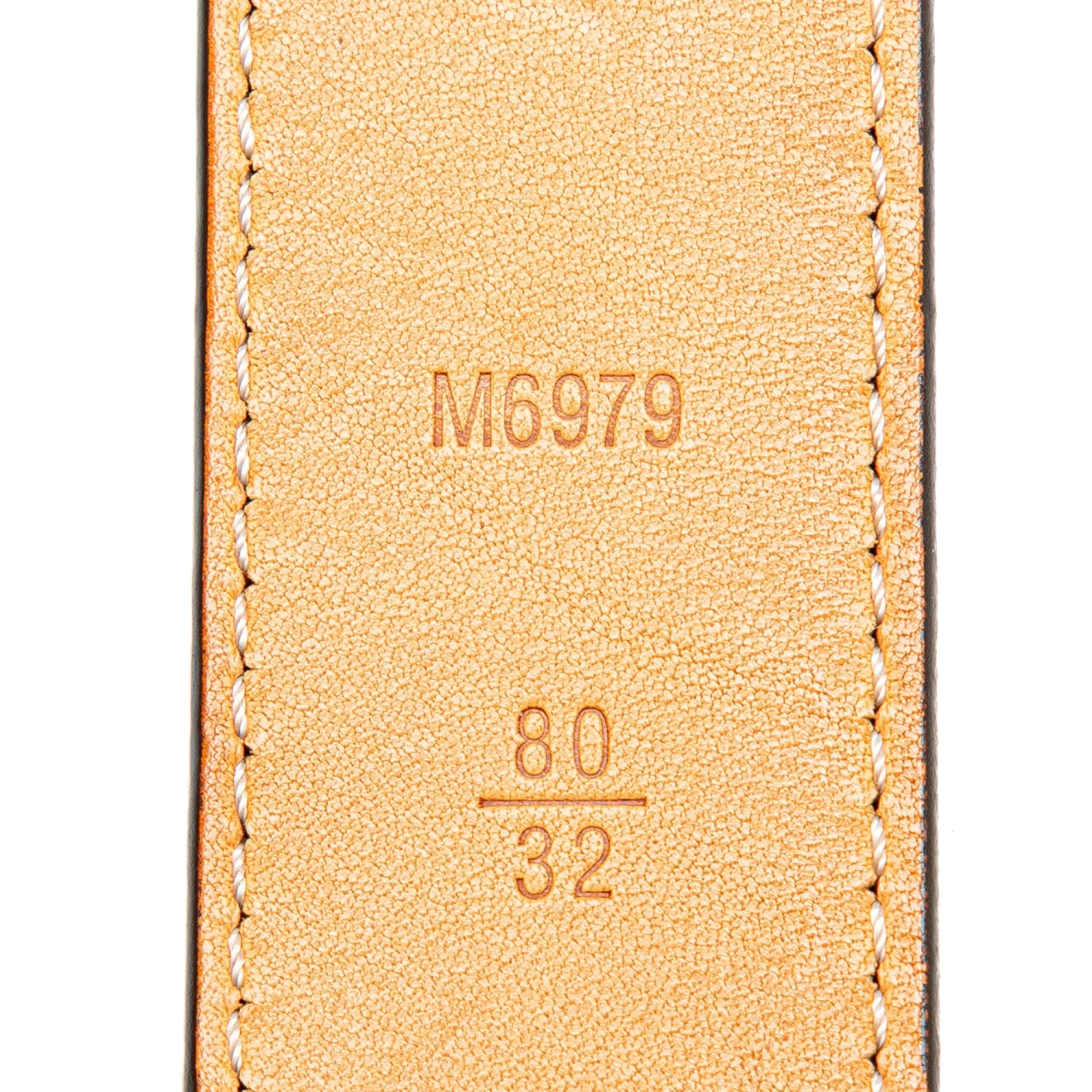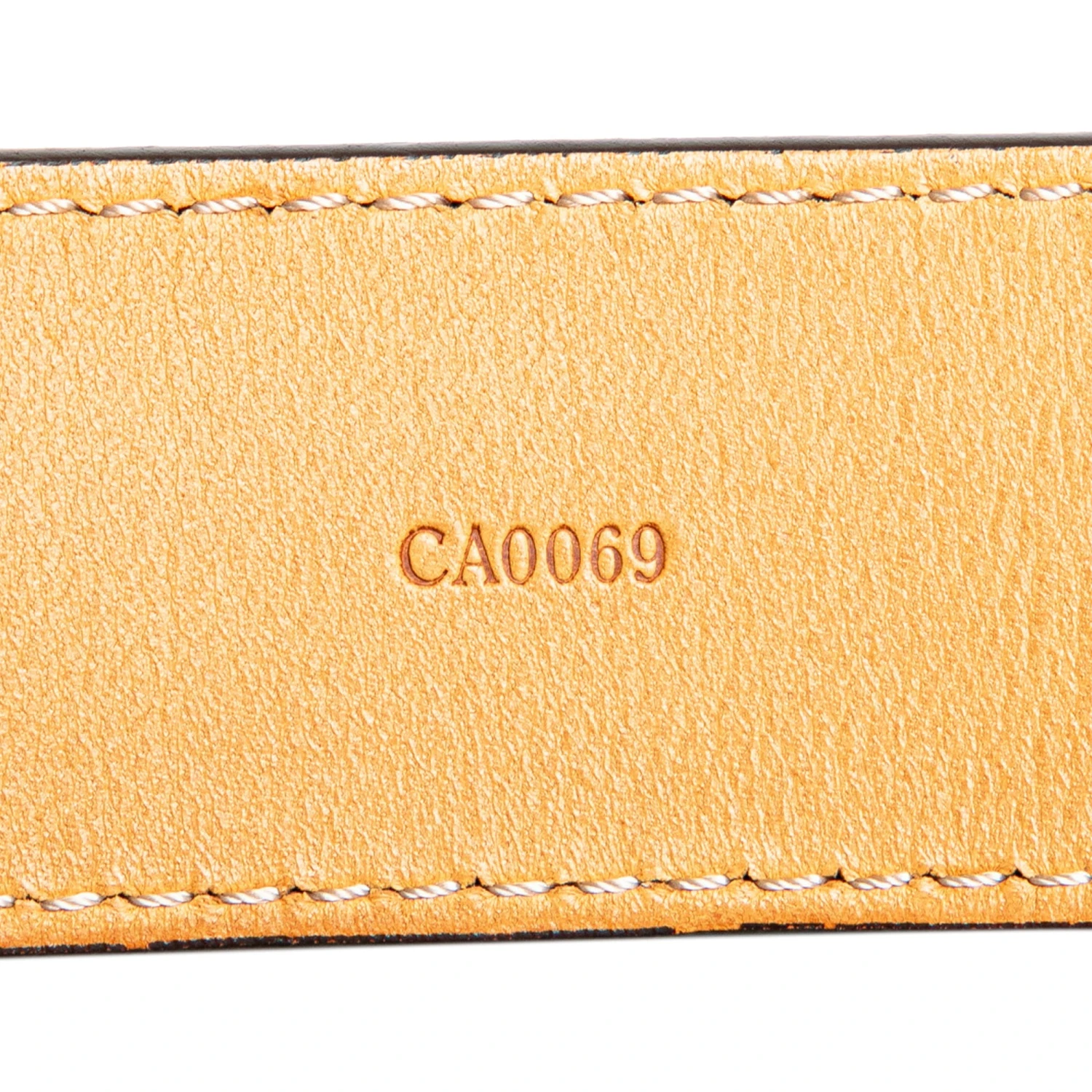This belt features a vernis leather body and a gold-tone buckle closure.