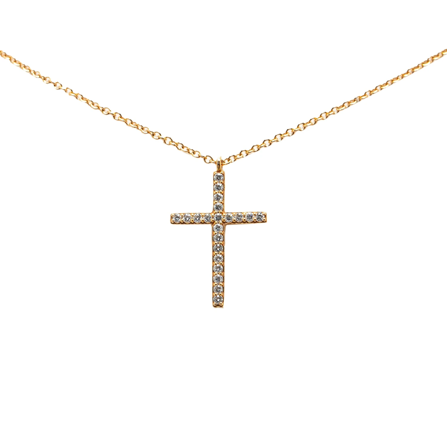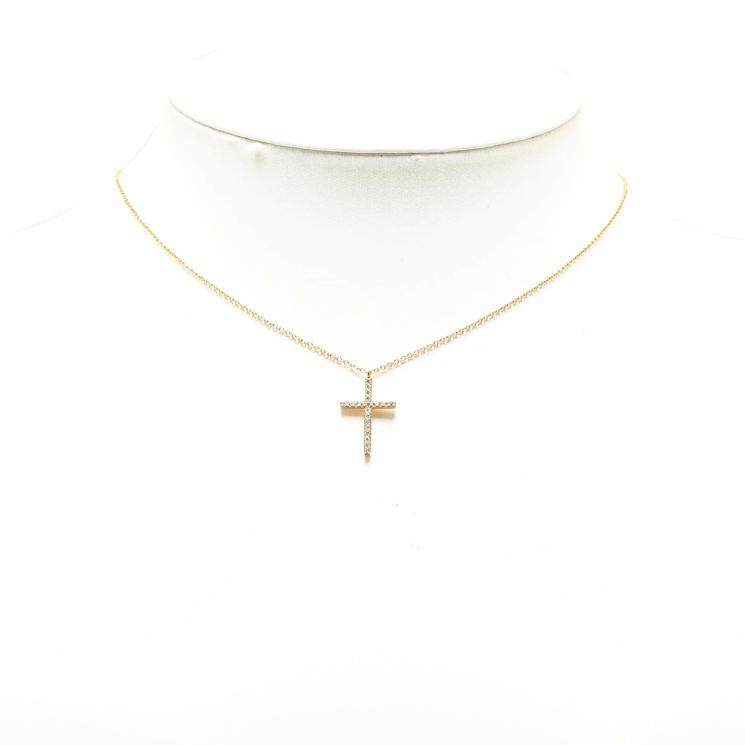 Tiffany 18K Yellow Gold Diamond Medium Metro Cross Pendant Necklace