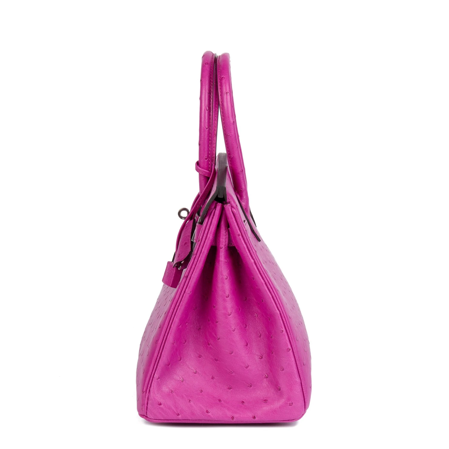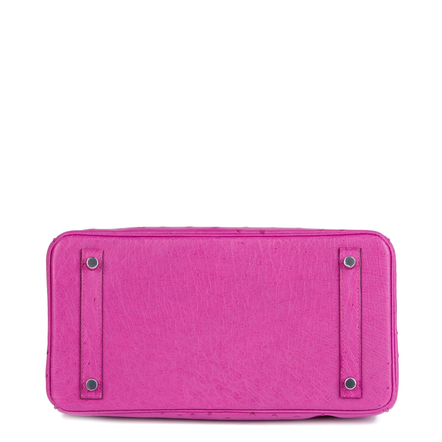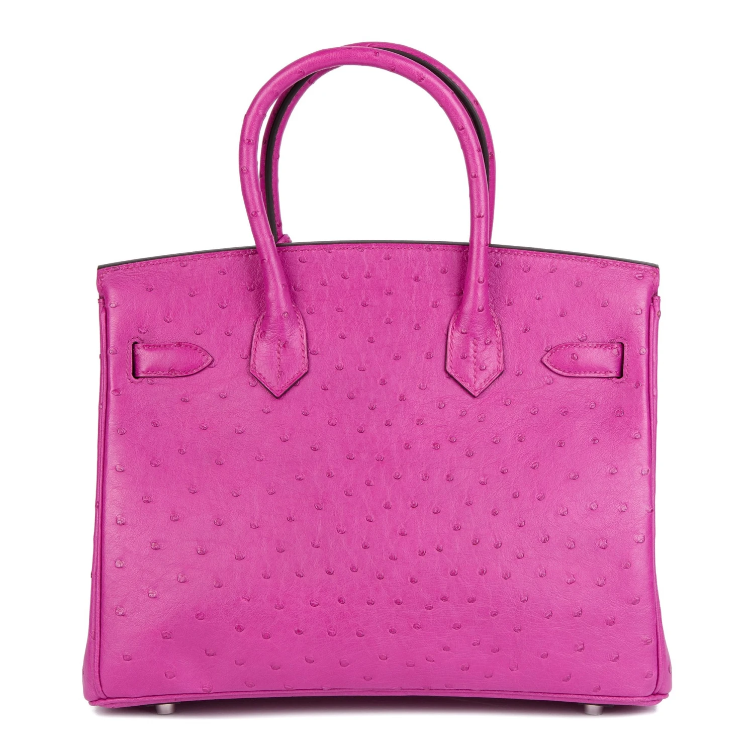 Hermes Rose Pourpre Ostrich Leather Birkin 30cm Retourne Tote